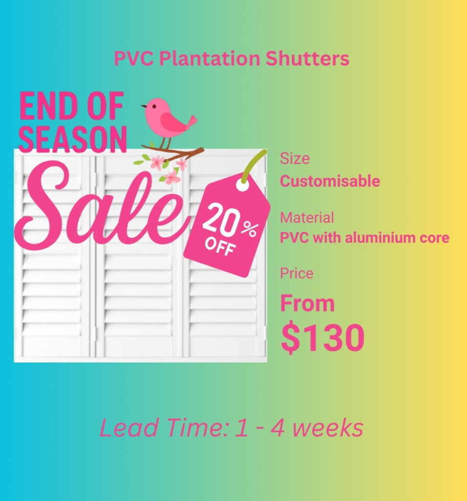 Local made PVC plantation shutters compare with imported shutters from overseas, much quicker, save time, customers don’t need to wait for 8-10 weeks. Normally 2-3 weeks, fast turnaround time, customers will have their own customised PVC plantation shutters.